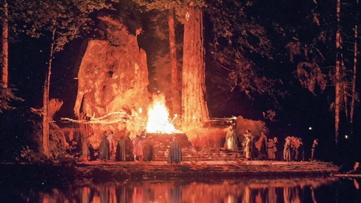 Even in contemporary elite circles, the owl retains this potent symbolism. At Bohemian Grove, where the world’s elite meet annually, a forty-foot stone owl statue is the center of their activities. Robed participants perform the “Cremation of Care” ritual before the owl, where they burn an effigy for prosperity. In this ritual, the owl represents Moloch, the Canaanite god famous for child sacrifice and power. What matters, as it pertains to this story, is the deliberate invocation of the owl as a conduit to deeper, forbidden, knowledge.